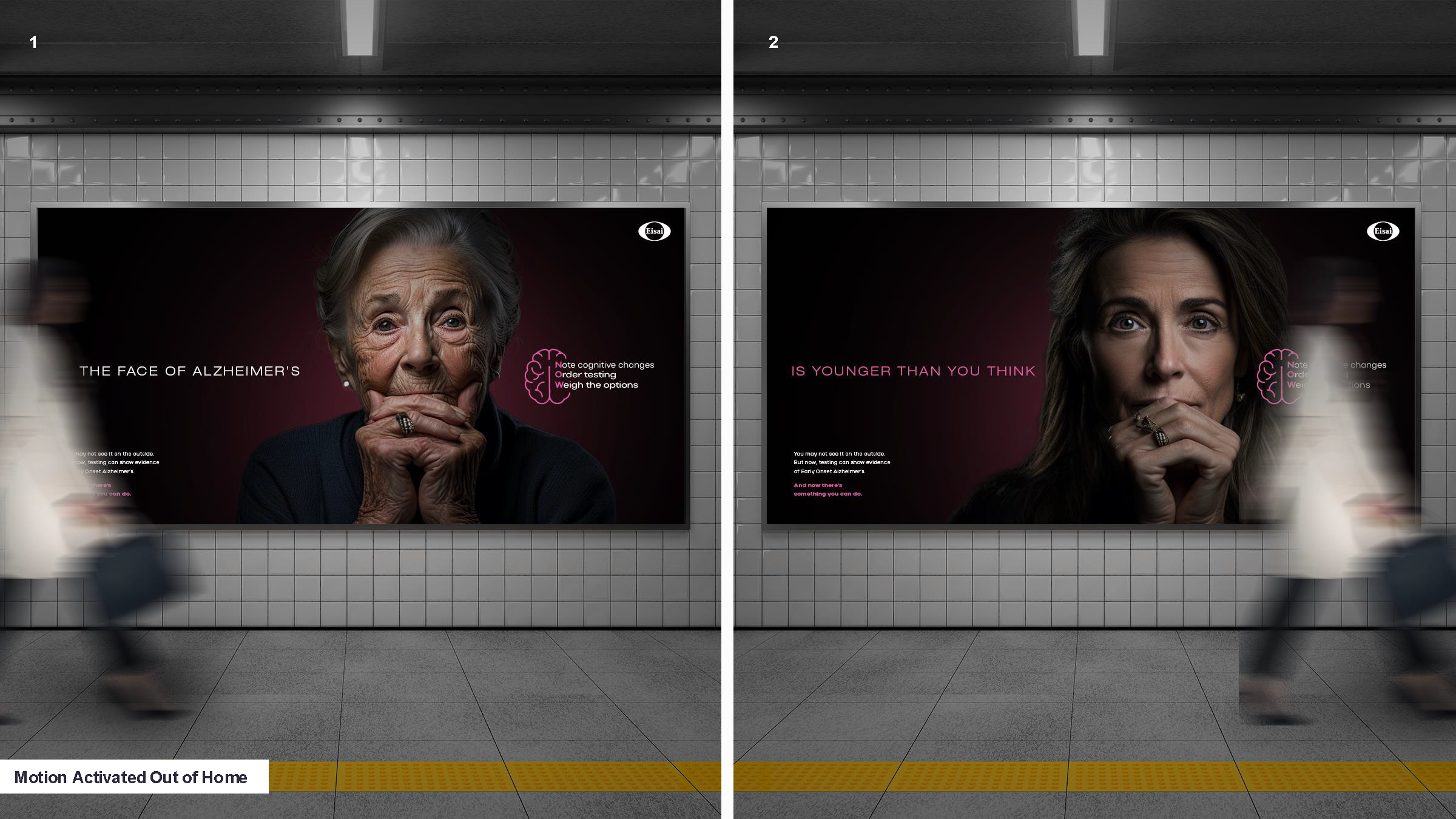 A motion-activated billboard reveals the campaign message as HCPs walk by